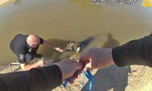 Police Officers Rescue Dog From A Canal With The Help Of Muffins